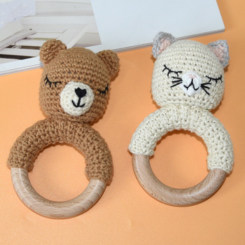 Mignon 12cm Crochet Ours Anneau En Bois Hochet Jouets De Dentition pour Nouveau-Né Bébé pour Pâques